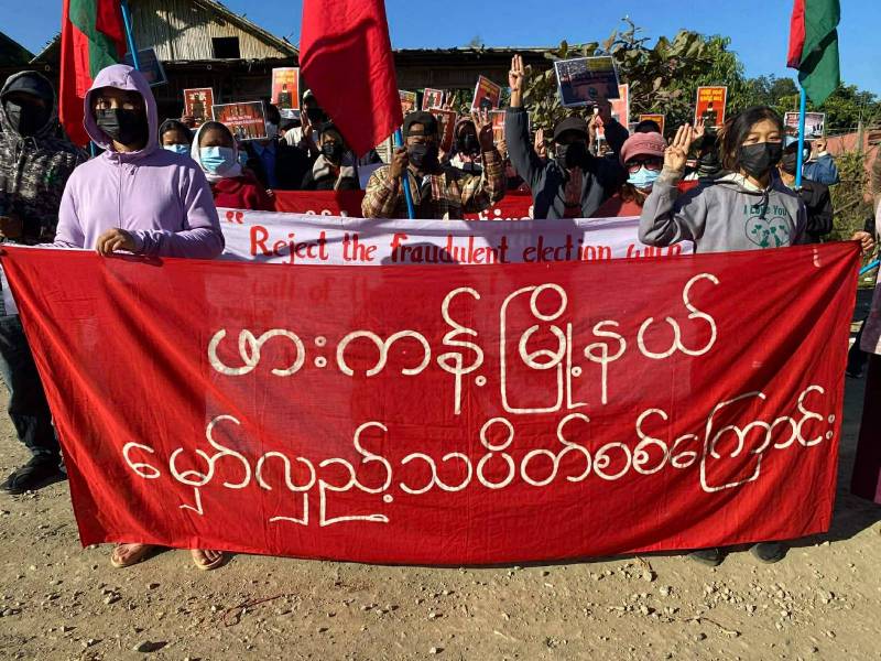 မဇ္ဈိမ။ ။ ကချင်ပြည်နယ် ဖားကန့်မြို့တွင် ယနေ့ (ဒီဇင်ဘာလ ၁၃ ရက်) တရုတ်အစိုးရ အားပေးကူညီထောက်ပံ့မှုနှင့် စစ်ခေါင်းဆောင် မင်းအောင်လိုင်ကျင်းပ ပြုလုပ်မည့် တရားမဝင်ရွေးကောက်ပွဲ ဆန့်ကျင်ရေး လူထုသပိတ်နှင့် ဖမ်းဆီးခံနေရသော နိုင်ငံတော်အတိုင်ပင်ခံ ဒေါ်အောင်ဆန်းစုကြည် ၊… The post စစ်တပ်ရွေးကောက်ပွဲကိုဆန့်ကျင်ကြောင်း ဖားကန့်သပိတ် ဆက်လက်ချီတက်ဆန္ဒပြ appeared first on BUR.MIZZIMA.COM .