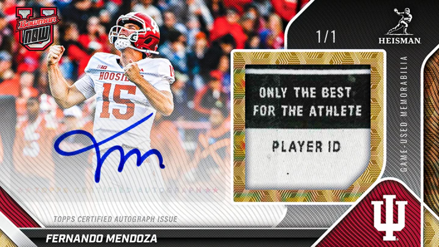 Indiana quarterback Fernando Mendoza's Heisman Trophy win has been commemorated by Topps with a special Bowman U Now release.