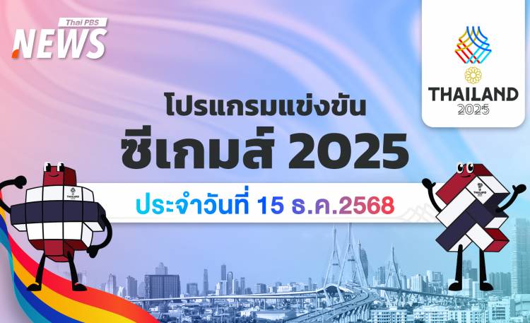 ตารางแข่งขันกีฬาซีเกมส์ 2025 วันที่ 15 ธันวาคม 2568 “ฟุตบอลชาย” เวลา 19.40 น. รอบรองชนะเลิศ "ไทย พบ มาเลเซีย" ถ่ายทอดสดทาง PPTV HD ช่อง 36 “วอลเลย์บอลหญิง” เวลา 17.30 น. รอบชิงชนะเลิศ “ไทย พบ เวียดนาม” ถ่ายทอดสดทาง PPTV HD ช่อง 36 “กรีฑา” เวลา 09.00 น. เป็นต้นไป ถ่ายทอดสดทางช่อง NBT “ว่ายน้ำ” เวลา 09.00 น. เป็นต้นไป ถ่ายทอดสดทางช่อง ไทยรัฐ 32 “เทนนิส” เวลา 09.00 น. เป็นต้นไป “บาสเกตบอล” เวลา 19.00 น. “ไทย พบ เมียนมา” “ยิมนาสติกลีลา” เวลา 09.30 น. เป็นต้นไป "ฟุตซอลชาย" เวลา 19.00 น. "ไทย พบ มาเลเซีย" ร่วมเชียร์นักกีฬาไทยกับไทยพีบีเอส คว้าเหรียญทองในศึกซีเกมส์ ครั้งที่ 33 จากทั้งหมด 574 เหรียญ แฟนกีฬาสามารถเดินทางเข้าไปชม และเชียร์ได้แบบฟรีๆ ติดขอบสนาม ผ่านการลงทะเบียนเข้าสู่ระบบ LINE @SEAGAMES หรือผ่านเว็บไซต์ https://www.seagames2025.org/ สามารถรับชมการถ่ายทอดสดได้ทาง สถานีโทรทัศน์แห่งประเทศไทย (NBT) โดยจะเป็นแม่ข่ายหลัก ร่วมกับ สถานีโทรทัศน์เพื่อการท่องเที่ยวและกีฬา (ทีสปอร์ต 7), ช่อง One31, ช่องไทยรัฐ TV32, ช่อง PPTV HD 36 รวมถึง ทรูวิชั่นส์ นาว (TrueVisions NOW) อ่านข่าว : "คีริน ตันติเวทย์" คว้าทอง วิ่ง 1,500 ม.ชาย เวลา 3 นาที 47.50 วินาที "น้องมินิ" หนูน้อยวัย 10 ขวบคว้าเหรียญทองสเก็ตบอร์ด ซีเกมส์ 2025 ปิดฉากอย่างสวยงาม! "เมย์ รัชนก" คว้าเหรียญทองซีเกมส์ ครั้งที่ 33