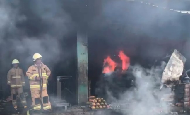 95 Personel Damkar Dikerahkan Padamkan Kebakaran Pasar Induk Kramat Jati