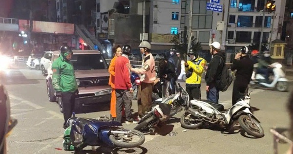 Một ô tô con tông liên hoàn nhiều xe máy đang dừng đèn đỏ lúc gần nửa đêm.