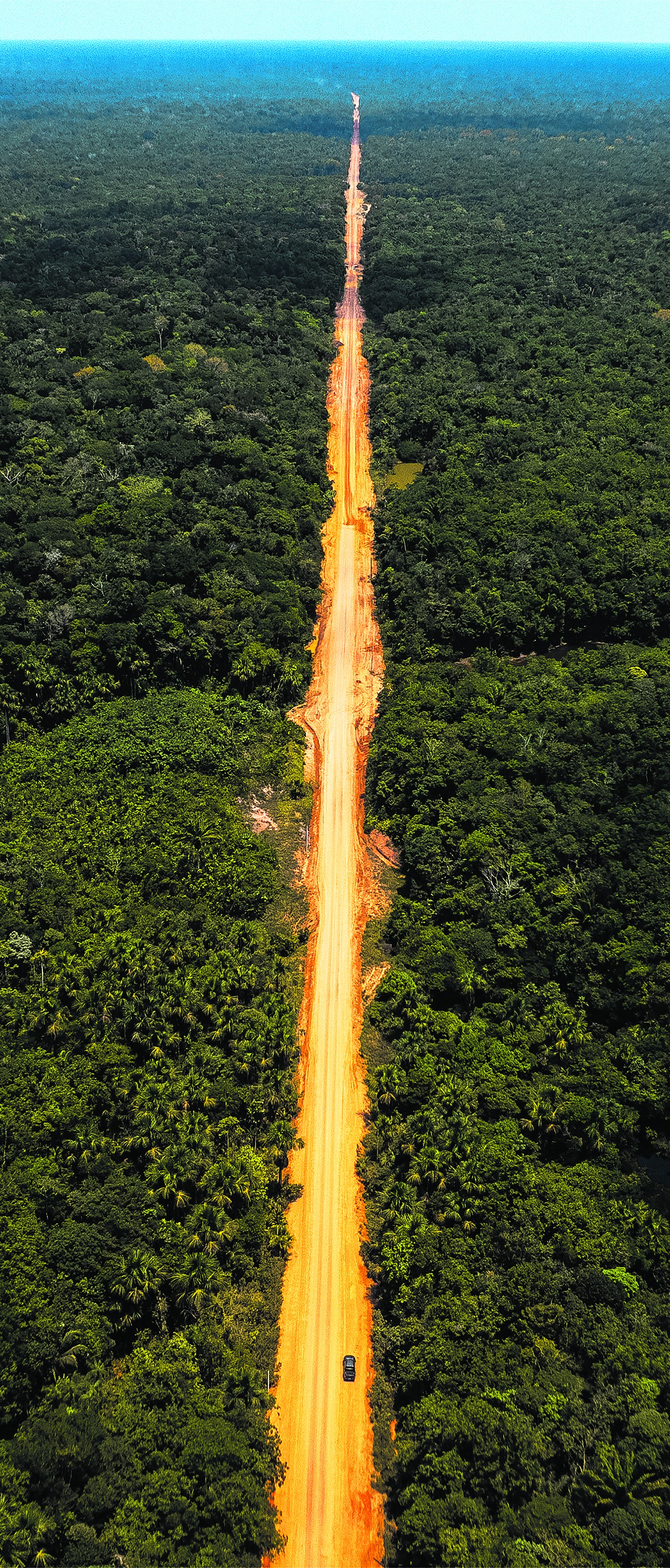 Trecho do meio da BR-319; rodovia corta floresta a...