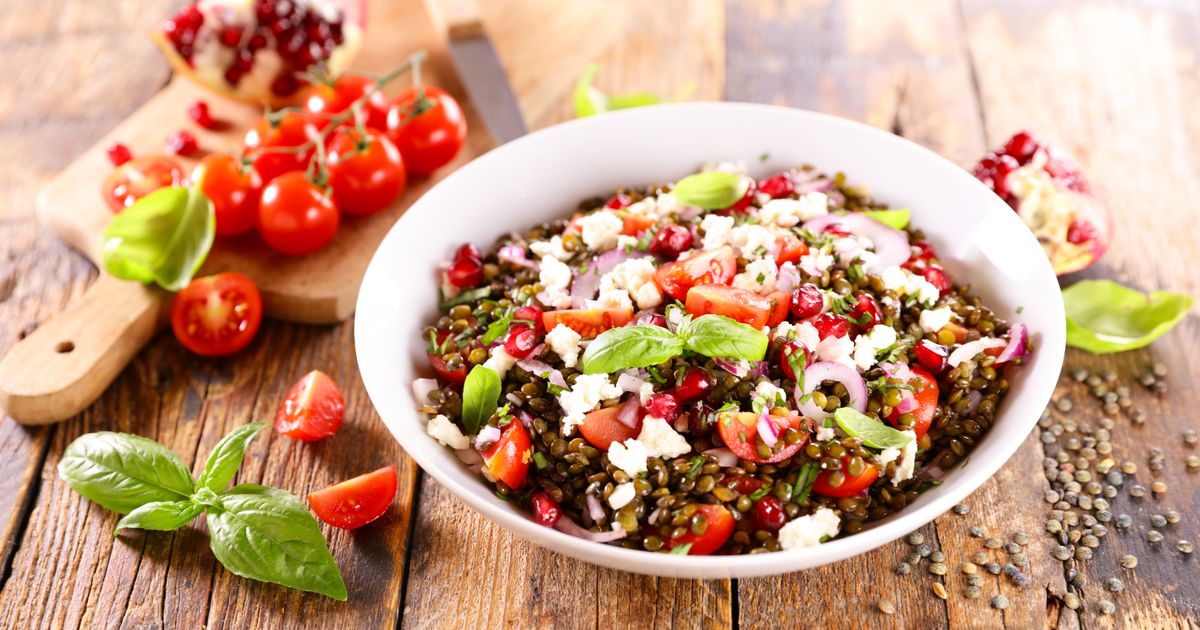 Ova šarena mediteranska salata od sočiva sa narom, bademima i fetom idealna je za slave, Božić i praznična okupljanja. Osvežavajuća, svečana i preukusna