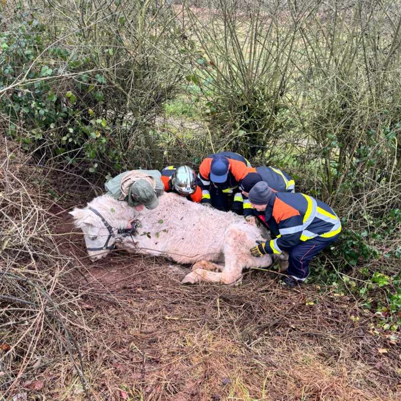 Réiden op der Atert: Secouriste vum CGDIS hunn e Pony aus engem Gruef musse befreien