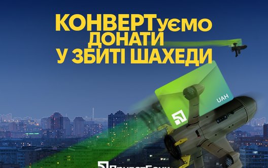 ПриватБанк і благодійний фонд "Спільнота Стерненка" стартували зі спільною благодійною кампанією "Конверт на перехоплення", мета якої – зібрати 50 мільйонів гривень на дрони-перехоплювачі шахедів.