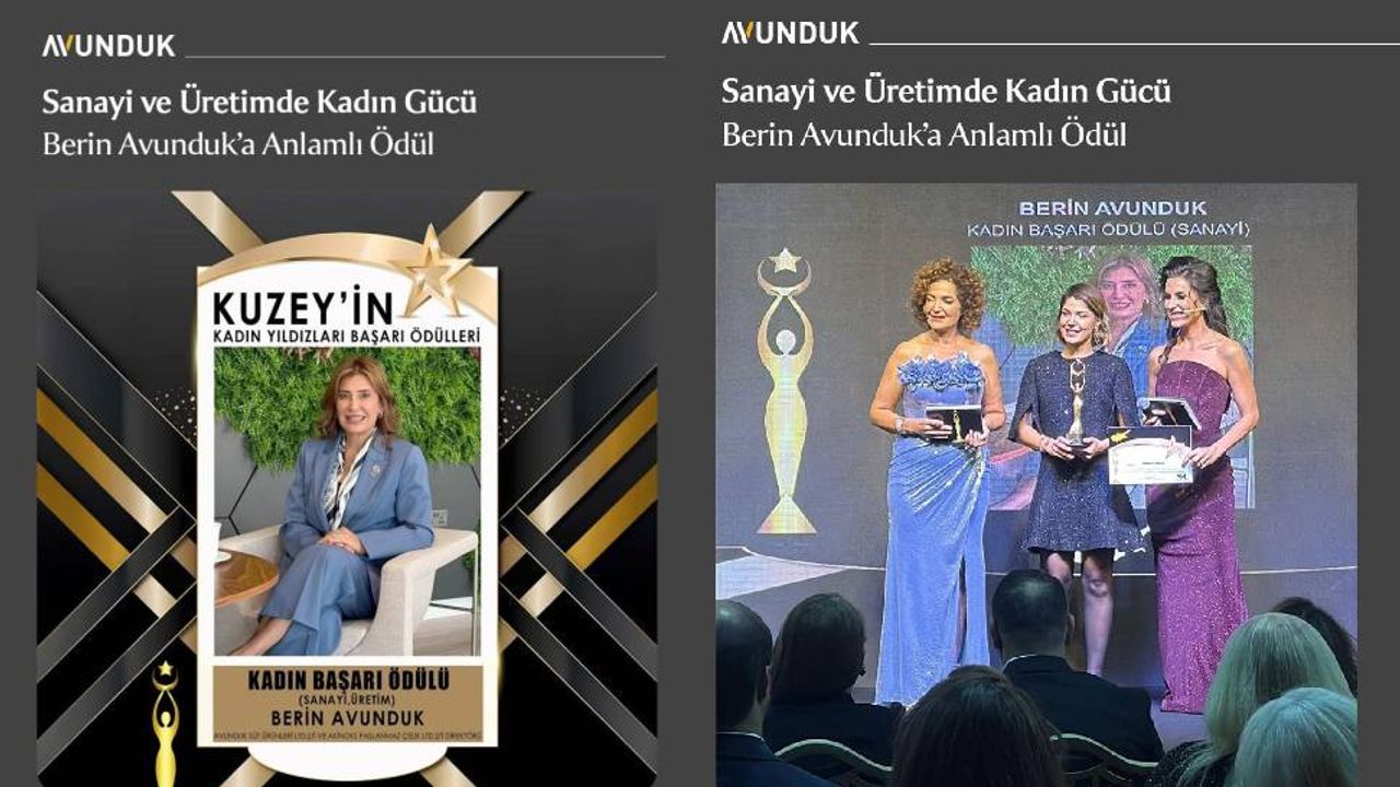 Saygın Medya tarafından bu yıl ilk kez düzenlenen “Kuzeyin Kadın Yıldızları Başarı Ödülleri”, geçtiğimiz gerçekleştirilen törenle sahiplerini buldu. Organizasyon kapsamında, Sanayi ve Üretim alanındaki başarıları nedeniyle Berin Avunduk ödüle layık görüldü.