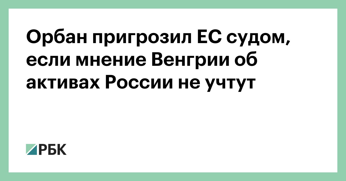 Премьер-министр Венгрии Виктор Орбан пригрозил обратиться в суд ЕС, если мнение Будапешта по поводу использования замороженных российских активов не будет учтено.