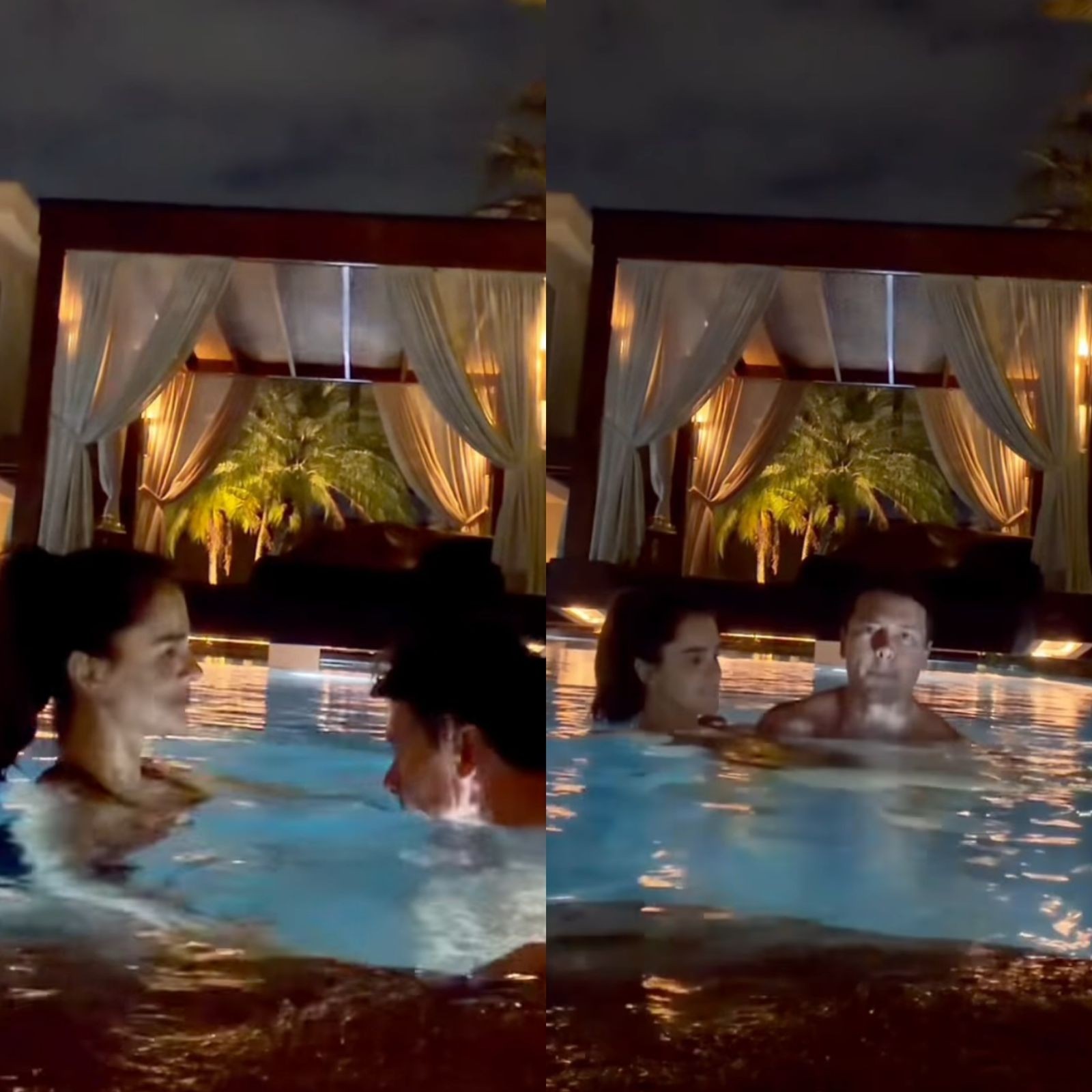 Rodrigo Faro e Vera Viel estão curtindo a noite desta segunda-feira (15.12) na piscina da mansão em que moram na Grande São Paulo.