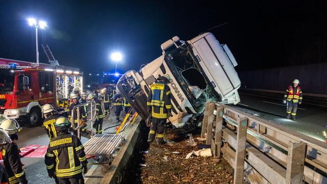 A2: Lkw kippt auf Autobahn um - Fahrer in Lebensgefahr