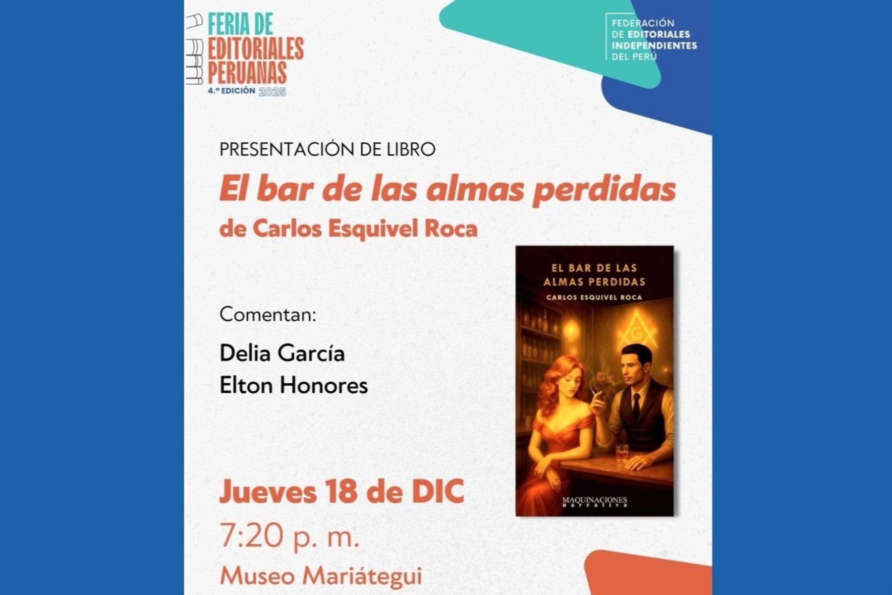 Feria de Editoriales Peruanas: presentan ‘El bar de las almas perdidas’ de Carlos Esquivel