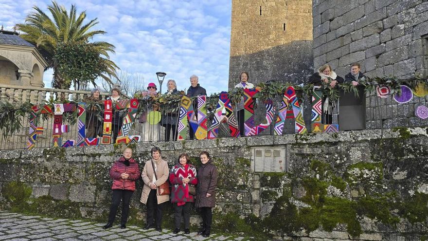 Castro Caldelas, municipio ourensano incluido en la lista de los catalogados como Pueblos más Bonitos de España, tiene además estos días una de las decoraciones navideña s más originales: figuras, árboles y pancartas, elaboradas en ganchillo.