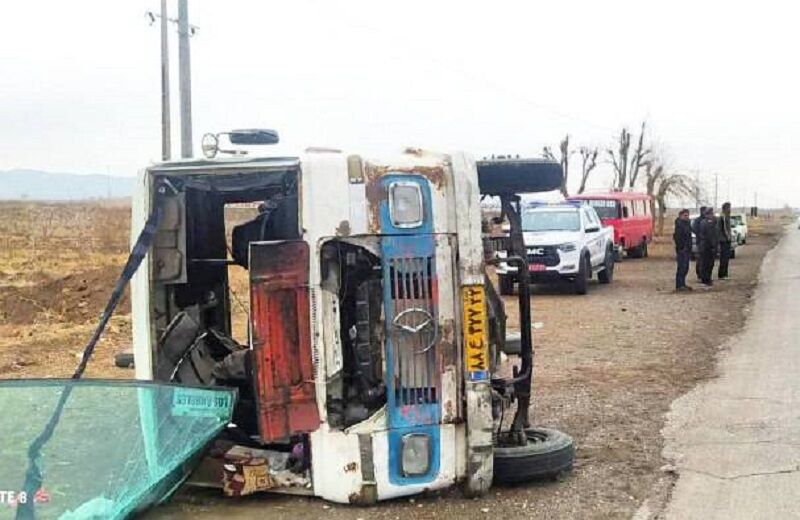 جدا شدن چرخ عقب علت واژگونی سرویس مدرسه در جاده نیشابور اعلام شد
