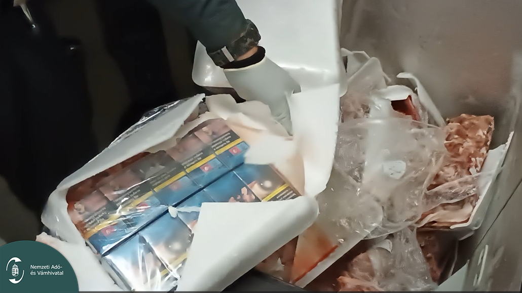 A Nemzeti Adó- és Vámhivatal (NAV) Bevetési Igazgatóságának pénzügyőrei az M5-ös autópálya hetényi pihenőjében állították meg egy furgont, ami tele volt fagyasztott hússal. Amikor a járőrök átkutatták a csomagokat, sorra kerültek elő a cigarettás dobozok. Több mint kétezer dobozt akartak átcsempészni.