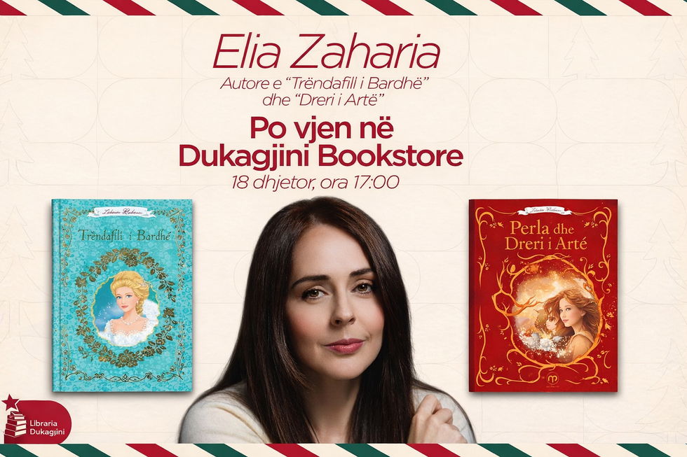 Elia Zaharia lindi më 8 shkurt 1983 në Tiranë dhe që herët u formua në një mjedis artistik, duke ndërtuar një rrugëtim të qëndrueshëm mes teatrit, muzikës dhe letërsisë. Pas diplomimit në vitin 2002 në Liceun Artistik “Jordan Misja”, në degën e artit dhe skenografisë, ajo u zhvendos në Paris për të ndjekur studimet universitare dhe për të zgjeruar horizontin e saj krijues në një nga qendrat më të rëndësishme kulturore të Evropës. Në vitin 2005 u diplomua në Konservatorin Kombëtar të Bordosë në art dramatik, ndërsa më pas ndoqi shkollën prestigjioze private të aktrimit Cours Florent në Paris. Studimet e saj në aktrim skenik i përfundoi në Universitetin Paris 8 në vitin 2010. Paralelisht me formimin akademik, Elia ka interpretuar në një sërë veprash teatrore dhe projektesh artistike, duke ndërtuar një profil të gjithanshëm si aktore dhe performuese. Që prej vitit 2015 ajo është anëtare e Teatrit Kombëtar të Shqipërisë, ndërsa ka qenë gjithashtu e pranishme në projekte kinematografike dhe në muzikë, përfshirë pjesëmarrjen e hershme në grupin “Spirit Voice” gjatë viteve 1999–2002. Përveç angazhimit artistik, Elia Zaharia ka dhënë një kontribut të rëndësishëm edhe në fushën humanitare si themeluese dhe presidente e Fondacionit “Mbretëresha Geraldinë” nga viti 2013 deri në vitin 2024, duke mbështetur familjet në nevojë dhe fëmijët me nevoja të veçanta. Në vitet 2016 dhe 2018, ajo bashkë prezantoi festivalin “Kënga Magjike”, një nga ngjarjet më të rëndësishme muzikore në vend. Letërsia për fëmijë është një tjetër kapitull i rëndësishëm i krijimtarisë së saj. Në vitin 2019 botoi librin e parë, “Trëndafili i bardhë”, i cili u bë bestseller dhe u botua edhe nga shtëpia prestigjioze Feltrinelli në Itali. Në vitin 2024, Elia rikthehet me librin e dytë për fëmijë, “Perla dhe dreri i artë” , një vepër që po gëzon sukses të madh në Shqipëri. Me këtë libër, Elia Zaharia rikthehet për herë të dytë në Librarinë Dukagjini, ku të enjten, më 18 dhjetor, në ora 17:00, do të mbahet promovimi i librit “Perla dhe dreri i artë” . Të gjithë lexuesit, prindërit dhe fëmijët janë të mirëpritur për të ndarë së bashku këtë takim me botën e magjishme të tregimeve për fëmijë. Ju mirëpresim në librarinë Dukagjini në sheshin Nëna Terezë për një mbrëmje shumë të bukur letrare.