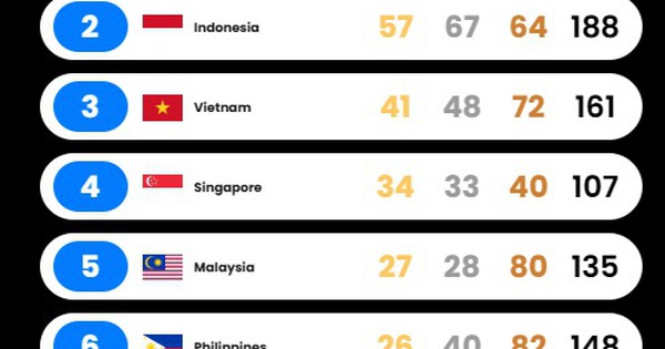 BXH huy chương SEA Games: Việt Nam nguy cơ “vỡ trận”, bị Indonesia bỏ xa