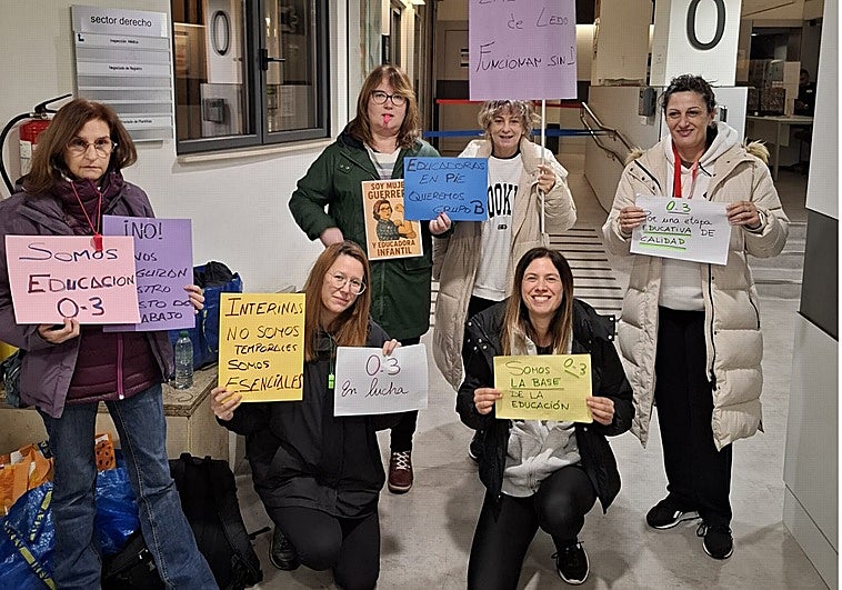 Nueve educadoras de 0 a 3 años pasan la noche previa a las dos jornadas de huelga en las dependencias de la consejería