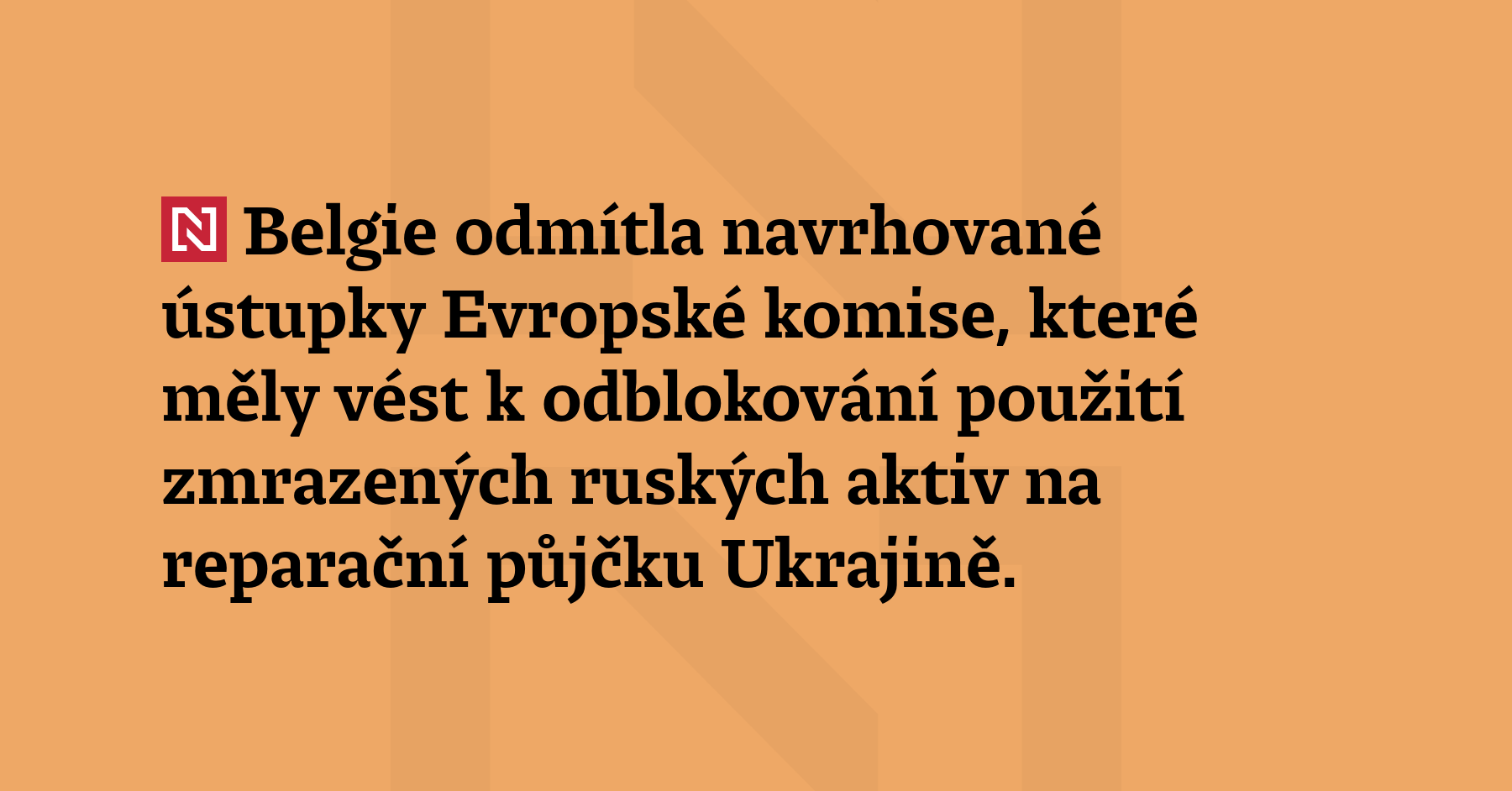 Belgie odmítla navrhované ústupky Evropské komise, které měly vést k odblokování použití zmrazených ruských aktiv na reparační půjčku Ukrajině. Zmařila tím naděje Evropské unie na uzavření dohody včas před čtvrtečním summitem lídrů, píše Politico.