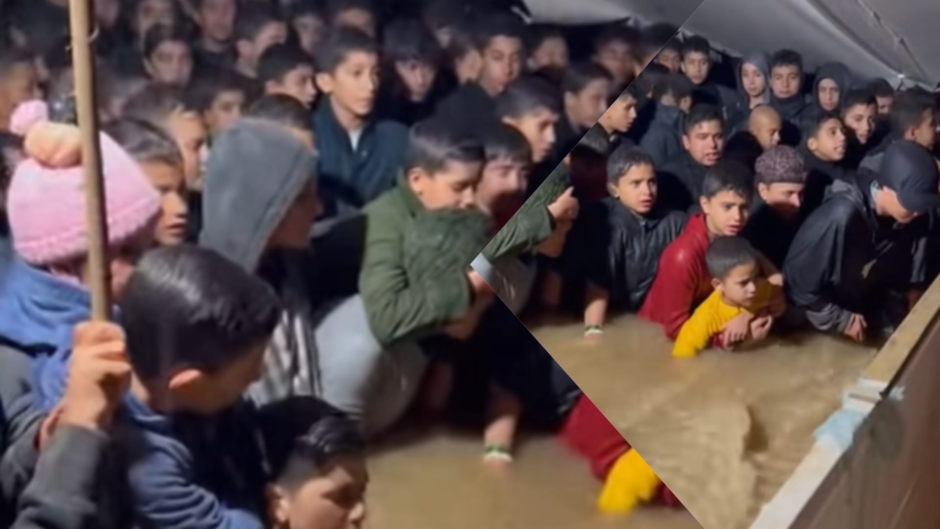 روّجت حسابات مقطع فيديو عبر مواقع التواصل الاجتماعي، باعتباره يعرض مشاهد لأطفال تغمرهم مياه الفيضانات داخل خيمة في قطاع غزة.