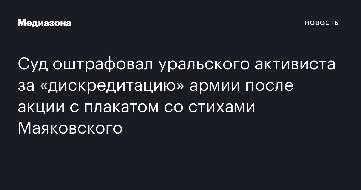 Суд оштрафовал уральского активиста за «дискредитацию» армии после акции с плакатом со стихами Маяковского