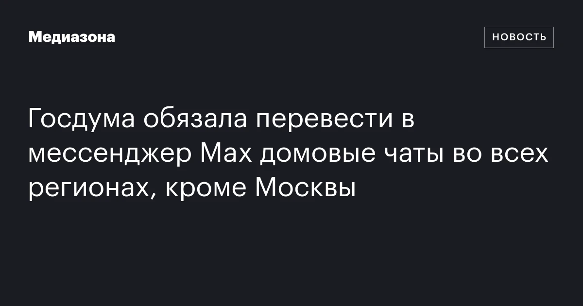 Госдума обязала перевести в мессенджер Max домовые чаты во всех регионах, кроме Москвы
