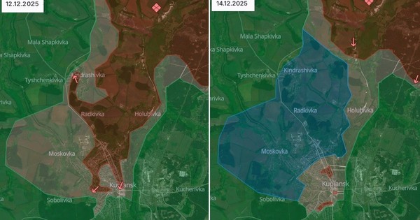 Bản đồ chiến sự ngày 12 và 14/12/2025 cho thấy, lực lượng Ukraine đã phản công hiệu quả, giành lại hầu hết khu vực quân Nga đã chiếm ở Kupiansk.
