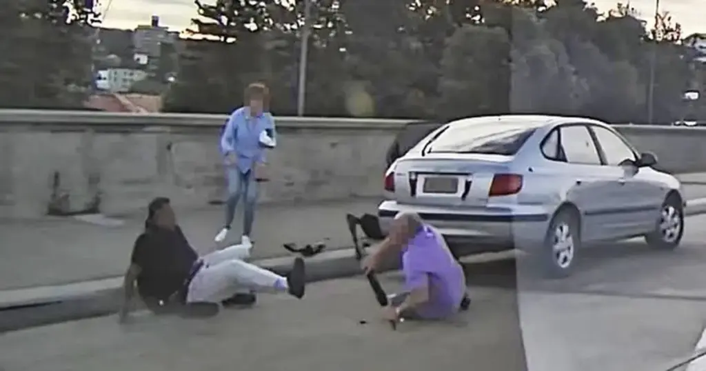 Na snimku se vidi kako se Boris Gurman, penzioner, fizički sukobljava s jednim od napadača