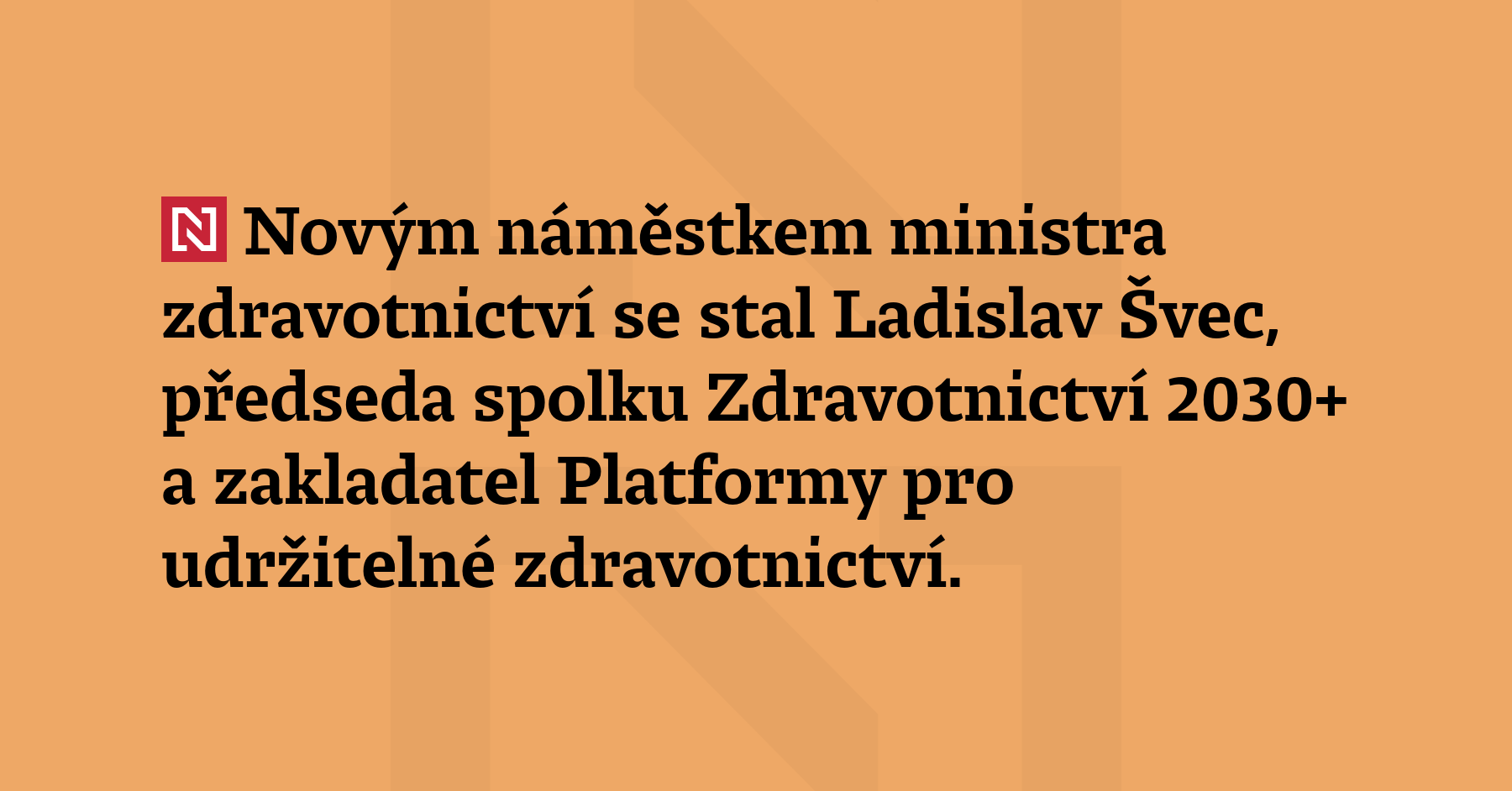 Novým náměstkem ministra zdravotnictví se stal Ladislav Švec, předseda spolku Zdravotnictví 2030+ a zakladatel Platformy pro udržitelné zdravotnictví. Má připravit změny zdravotního pojištění, uvedlo tiskové oddělení ministerstva.