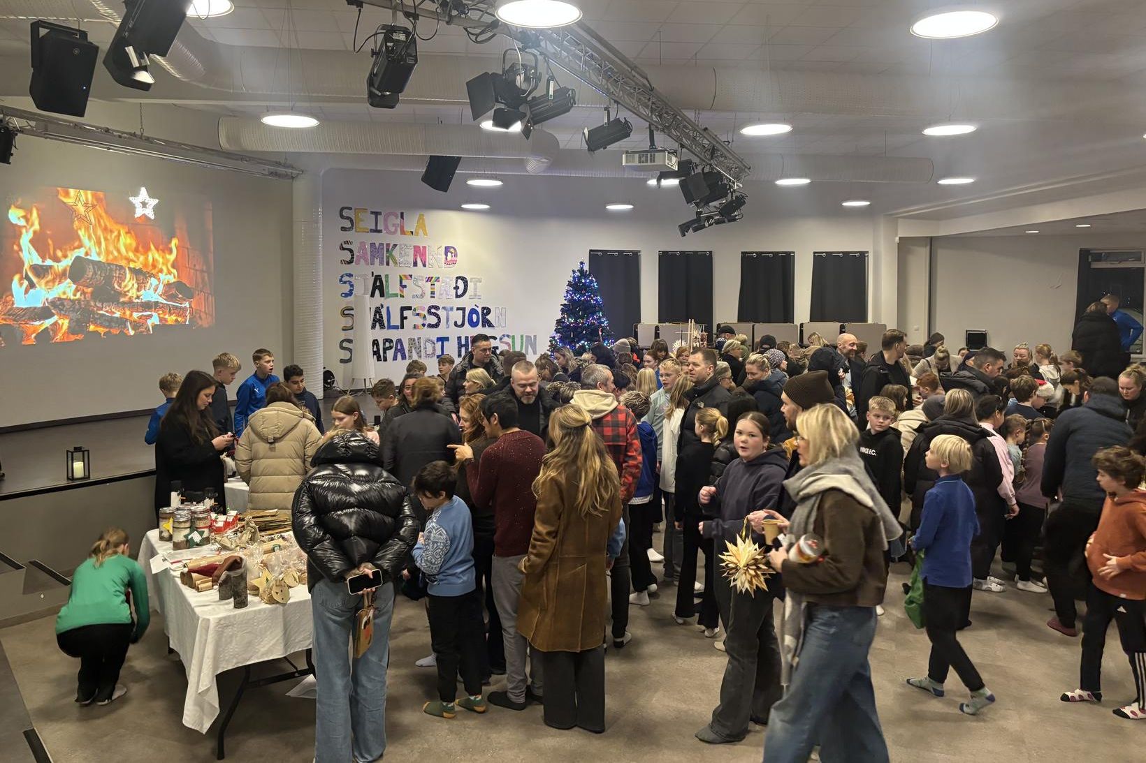 Góðgerðajólamarkaður var í morgunn í Flataskóla þar sem nemendur skólans seldu jólavarning sem þeir höfðu búið til á þemadögum í síðustu viku og allur ágóði sölunnar fer til SOS Barnaþorpa.