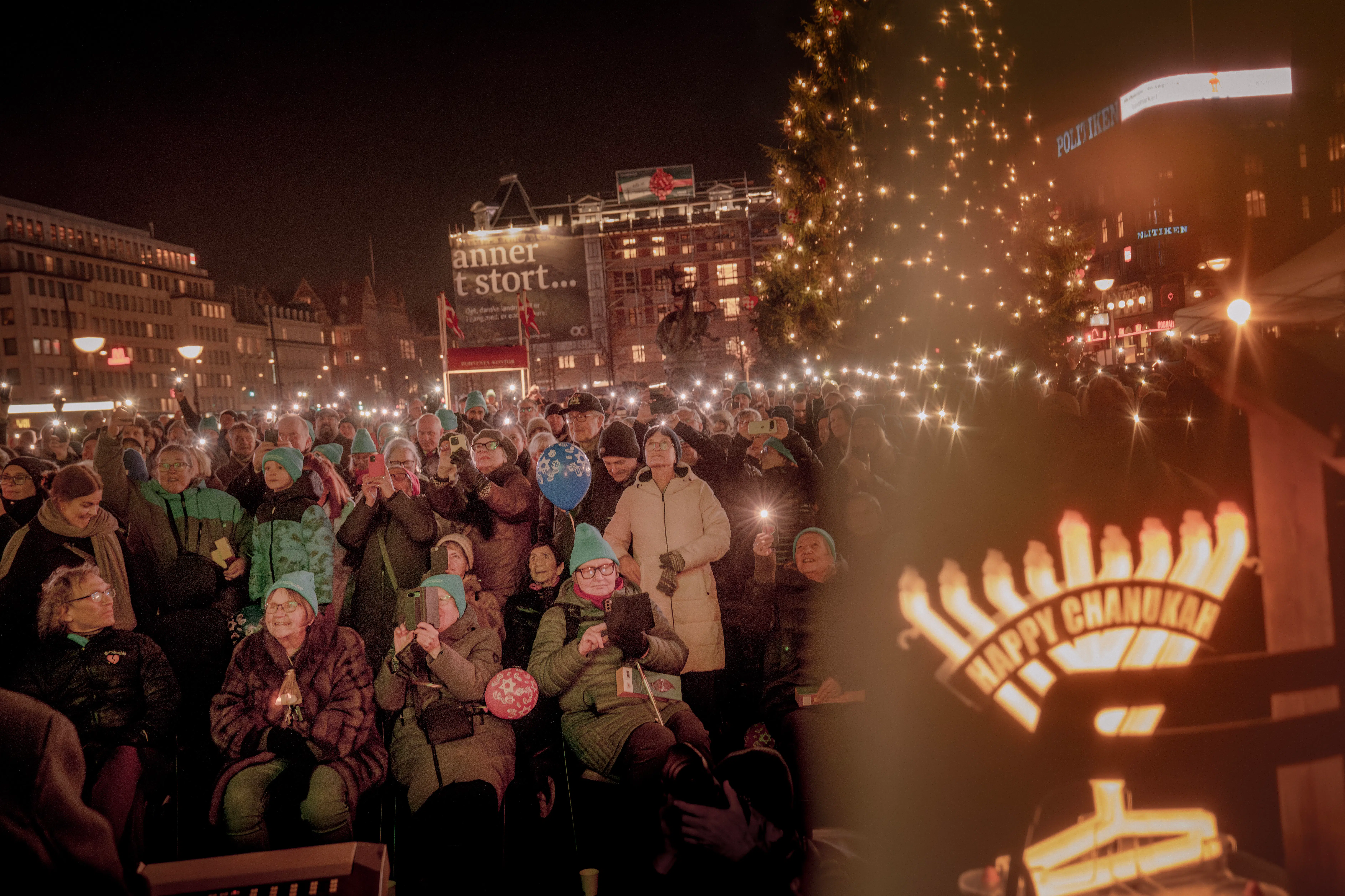 Mange mennesker var stimlet sammen på Rådhuspladsen for at markere tredjedagen for den jødiske højtid Hanukkah. Der skulle tændes lys i en mørk tid. Både rent fysisk og i overført betydning.