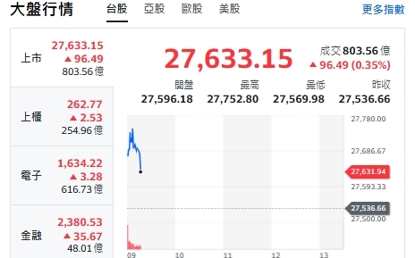 Newtalk新聞 台股今天(17日)開紅漲逾160點後收斂漲幅,最高來到27752點。上櫃、電子與金融類股全揚升。重要電子權值股F4,約9點20分前,台積電漲5元、來到1440元。鴻海漲0.5元、來到218.5元。台達電漲2元、來到903元。廣達跌3.5元、來到269.5元。聯發科漲20元、來到1440元。 分析師葉俊敏表示,台股-330(-1.19%)、收27536點,成交量5249億。測支撐60日均27323。領跌前30大權值:群聯、力旺、台燿、穩懋、金居。 葉俊敏盤點以下指標族群: IC強勢指標:廠務機電工程→亞翔、漢唐、聖暉*、帆宣。 高階測試:旺矽、穎崴、精測。 設備耗材:晶呈科、華景電、兆聯實、信綋科、汎銓。 記憶體:華邦電、南亞科支撐強 CCL、PCB指標:台光電、金像電。 CPO強勢指標→ IET-KY、環宇-KY、萊德光電。 ※Newtalk提醒您: #投資一定有風險,投資有賺有賠,投資前應檢視自身能力,申購前應詳閱公開說明書。 延伸閱讀: 台股開盤》電子權值F4乏力 大盤跌逾百點 短線強勢群族來了 台股開盤》跌500點不恐慌 電子權值回檔!台股、台積三道防線現身 谷歌智慧眼鏡題材 它憑什創逾20年新高 布局攻略一次看 00919重倉三大金控、年化配息連11季破10%!法人評析一次看 從FWA到GB300!法人點名成長股名單、買進一次看