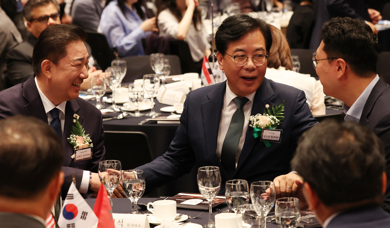 ▲ 9일 서울 중구 프레스센터에서 열린 한국외국어신문협회 창립 10주년 기념식에 김병기 더불어민주당 대표 직무대행 겸 원내대표와 송언…