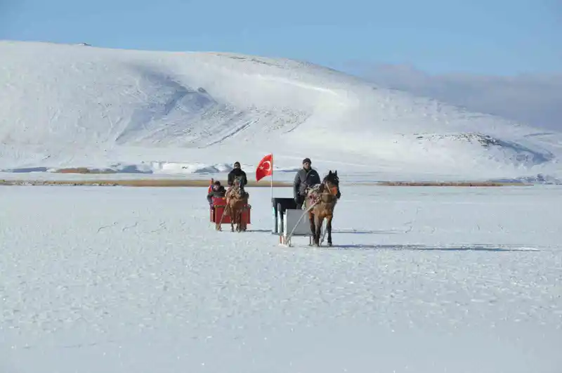 çıldır gölü’nde kış masalı: atlı kızaklar buz üstünde halaylarla sezonu açtı