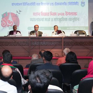 বাংলাদেশ ইউনিভার্সিটি অব বিজনেস অ্যান্ড টেকনোলজিতে (বিইউবিটি) যথাযোগ্য মর্যাদা ও ভাবগাম্ভীর্যের মধ্য দিয়ে মহান বিজয় দিবস-২০২৫ পালন করা হয়েছে। মঙ্গলবার (১৬ ডিসেম্বর) সকাল ১১টায় বিশ্ববিদ্যালয়ের আন্তর্জাতিক সম্মেলন কেন্দ্রে এক আলোচনা সভা ও মনোজ্ঞ সাংস্কৃতিক অনুষ্ঠানের আয়োজন করা হয়। বুধবার (১৭ ডিসেম্বর) এক সংবাদ বিজ্ঞপ্তিতে এ তথ্য জানিয়েছে বিইউবিটি। অনুষ্ঠানে প্রধান অতিথি হিসেবে উপস্থিত... বিস্তারিত