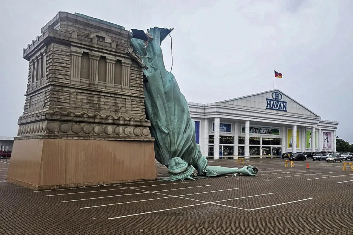 רוחות בעוצמה של עד 56 מייל לשעה גרמו לקריסת העתק פסל החירות בעיר גואיבה שבדרום ברזיל. לא דווח על נפגעים, אך מזג האוויר הקיצוני הוביל לנזקים נוספים ואזהרות חירום באזור