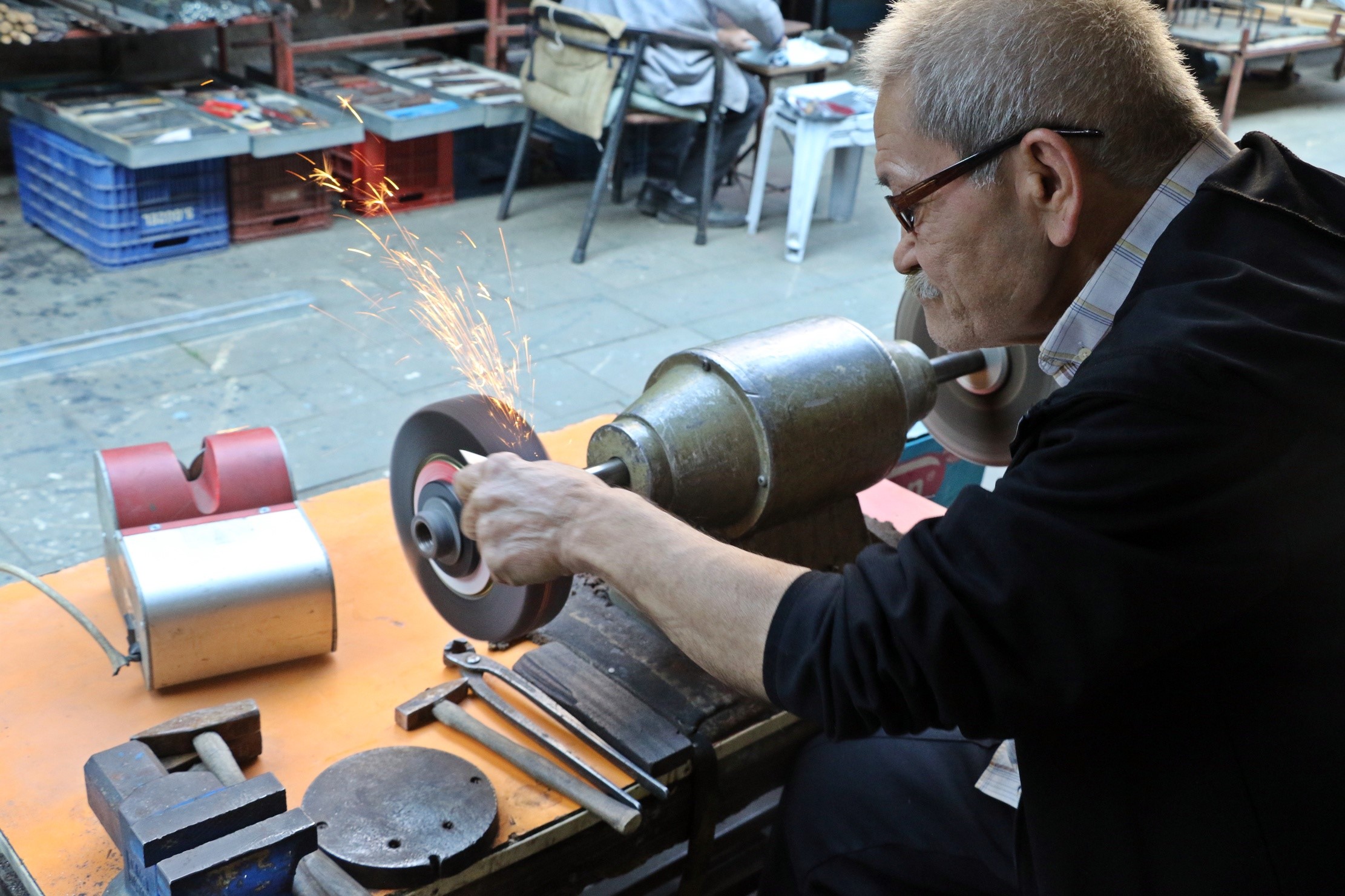 Antalya'nın Muratpaşa ilçesinde yaşayan 65 yaşındaki bıçak bileme ustası, dededen toruna miras kalan mesleğini 7'nci kuşak olarak 50 yıldır ilk günkü heyecanla sürdürüyor. Günde 12 saat çalışan usta, 50-60 bin lira maaşa rağmen çırak bulamamaktan yakınıyor.