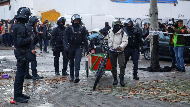 Los Mossos empiezan a desalojar el antiguo instituto de Badalona donde vivían cientos de inmigrantes