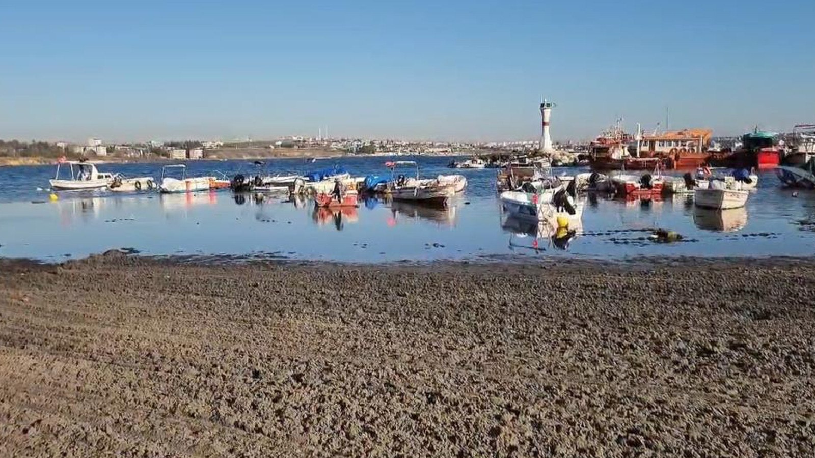 Tekirdağ'ın Marmaraereğlisi ilçesinde denizin yaklaşık 20 metre çekilmesiyle sahil şeridinde kum adacıkları ortaya çıktı.