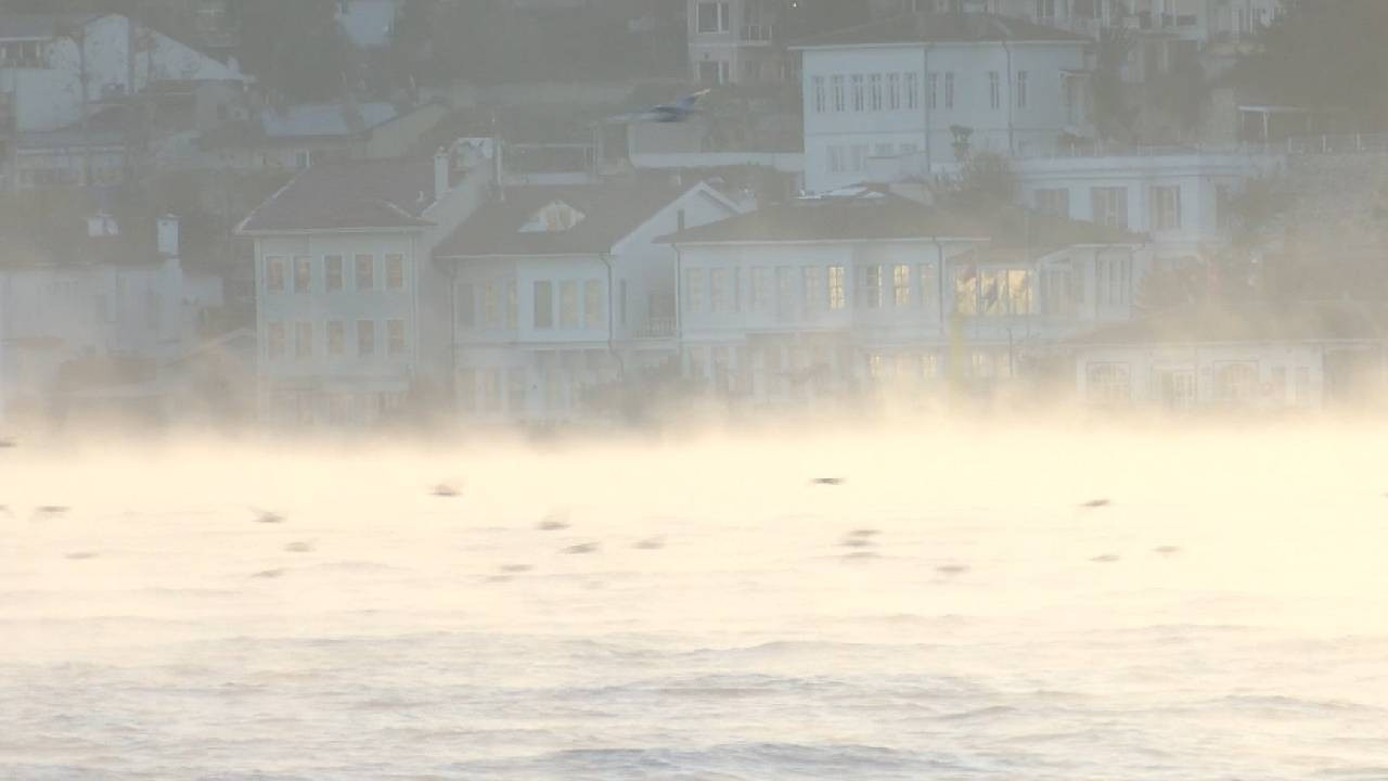 İstanbul Boğazı'nda denizden buhar yükseldi (Video)