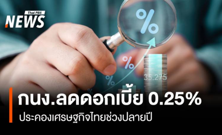 วันนี้ (27 ธ.ค.2568) นายสักกะภพ พันธ์ยานุกูล เลขานุการ คณะกรรมการนโยบายการเงิน (กนง.) แถลงผลการประชุม กนง.ในวันที่ 17 ธันวาคม 2568คณะกรรมการฯ มีมติเป็นเอกฉันท์ ให้ลดอัตราดอกเบี้ยนโยบายร้อยละ 0.25 ต่อปี จากร้อยละ 1.50 เป็นร้อยละ 1.25 ต่อปี โดยให้มีผลทันที เศรษฐกิจไทยในปี 2569 และปี 2570 มีแนวโน้มขยายตัวชะลอลงจากครึ่งแรกของปี 2568 ตามการบริโภคภาคเอกชนที่ชะลอลงตามแนวโน้มรายได้ และภาคส่งออกที่ได้รับผลกระทบจากมาตรการทางภาษีขอสหรัฐ ขณะที่ภาคการท่องเที่ยวทยอยฟื้นตัว ด้านอัตราเงินเฟ้อทั่วไปมีแนวโน้มอยู่ในระดับต่ำตามราคาพลังงาน และอาหารสดเป็นสำคัญขณะที่แรงกดดันเงินเฟ้อด้านอุปสงค์มีจำกัดในภาวะที่เศรษฐกิจขยายตัวต่ำกว่าศักยภาพ ด้านสินเชื่อรวมยังหดตัว และคุณภาพสินเชื่อกลุ่มเปราะบางยังด้อยลงโดย SMEs ถูกกดดันด้านสภาพคล่องจากทั้งปัญหาการเข้าถึงสินเชื่อ และการแข็งค่าของเงินบาท คณะกรรมการฯ เห็นว่านโยบายการเงินสามารถผ่อนคลายเพิ่มเติมได้ภายใต้เศรษฐกิจที่มีแนวโน้มชะลอตัวชัดเจน และมีความเสี่ยงมากขึ้น เพื่อให้ภาวะการเงินสนับสนุนการฟื้นตัวของเศรษฐกิจ และช่วยบรรเทาภาระหนี้ให้กับกลุ่มเปราะบาง รวมถึงช่วยเสริมประสิทธิผลของมาตรการทางการเงิน และนโยบายอื่นของภาครัฐ จึงเห็นควรให้ลดอัตราดอกเบี้ยนโยบายร้อยละ 0.25 ต่อปี ในการประชุมครั้งนี้ สำหรับเศรษฐกิจในปี 2569 มีแนวโน้มขยายตัวต่ำลงจากปีนี้ตามการบริโภคภาคเอกชนที่ชะลอลงตามรายได้ และการส่งออกสินค้าที่ได้รับผลกระทบจากมาตรการทางภาษีของสหรัฐ ขณะที่ภาคการท่องเที่ยวทยอยฟื้นตัว ทั้งนี้ เศรษฐกิจในปี 2570 มีแนวโน้มฟื้นตัวแต่ยังต่ำกว่าศักยภาพ โดยมีแรงขับเคลื่อนหลักจากการฟื้นตัวของภาคบริการ ขณะที่การส่งออกสินค้า และภาคการผลิตยังถูกกดดันจากการแข่งขันที่สูงในระยะข้างหน้า ต้องติดตามความเสี่ยงจากมาตรการทางภาษีของสหรัฐ ที่อาจมีเพิ่มเติม ความล่าช้าของกระบวนการงบประมาณปี 2570 และการปรับตัวของภาคธุรกิจโดยเฉพาะ SMEs ที่ยังเผชิญปัญหาด้านการแข่งขัน และการเข้าถึงสินเชื่อ ขณะที่อัตราเงินเฟ้อทั่วไปในปี 2568 - 2569 และ 2570 ปรับลดลงเทียบกับประมาณการเดิม โดยมีแนวโน้มอยู่ที่ร้อยละ -0.1-0.3 และ 1.0 ตามลำดับ และคาดว่าจะทยอยกลับเข้าสู่กรอบเป้าหมายในช่วงครึ่งแรกของปี 2570 อ่านข่าว: "สมเด็จพระราชินี" ทรงนำทัพคว้าเหรียญทองซีเกมส์ การแข่งขันเรือใบประเภท SSL47 "อนุทิน" เผย ยึดฤกษ์สะดวกเปิดตัวแคนดิเดตนายกฯ ภูมิใจไทย 10 ธุรกิจเด่น-ร่วง ม.หอการค้า เผย ธุรกิจไหนทำแล้วมีโอกาสรวยปี2569