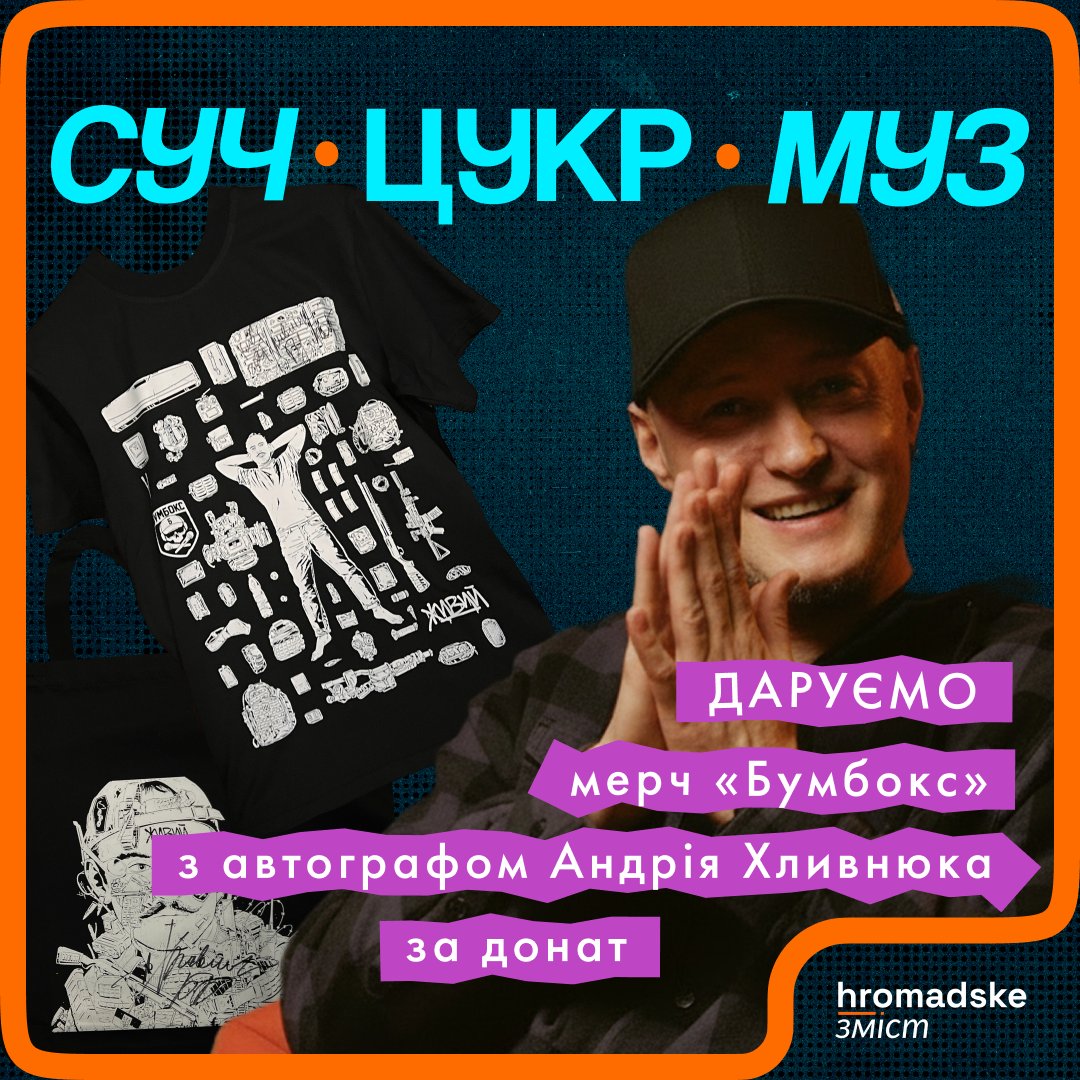 Шопер і футболка з нової колекції мерчу «Живий» від «Бумбоксу» з автографом Андрія Хливнюка.