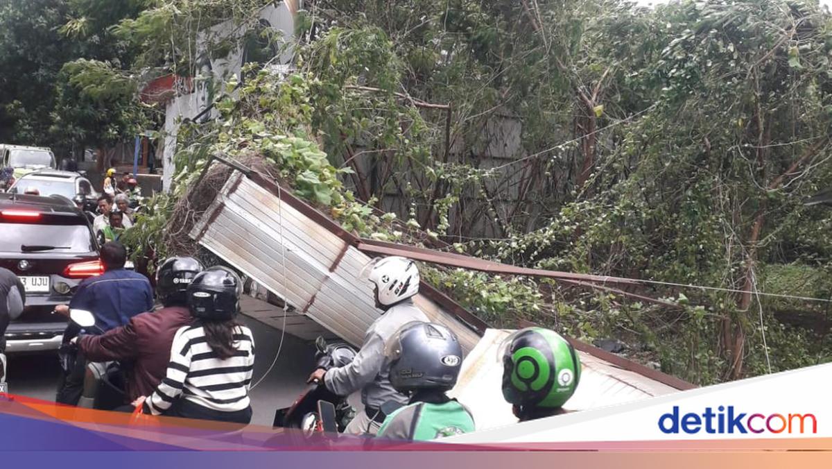 Seng pembatas setinggi sekitar 4 meter ambruk di kawasan Mega Kuningan, Jaksel. Seng pembatas ambruk akibat terhempas angin kencang.