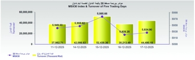 كتب – عبدالحميد القاسمي سجل مؤشر بورصة مسقط أرتفاعا بمقدار 6.7 نقطة، وأغلق عند حاجز 5934.90 نقطة، وبلغت قيمة التداول 44.480 مليون ريال عماني مسجلة ارتفاعا بنسبة 16.4% عن آخر جلسة ت...