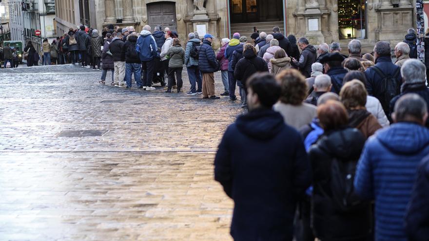 Colas para recoger el calendario municipal de 2026 en Pamplona