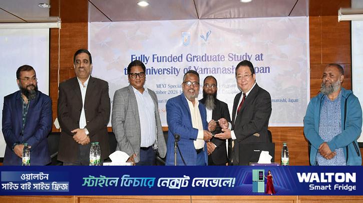 জাপানের ইউনিভার্সিটি অব ইয়ামানাশিতে সম্পূর্ণ অর্থায়নে স্নাতকোত্তর ও গবেষণার সুযোগ পাচ্ছেন খুলনা বিশ্ববিদ্যালয়ের (খুবি) শিক্ষার্থীরা। দুই বিশ্ববিদ্যালয়ের মধ্যে স্বাক্ষরিত সমঝোতা স্মারক (এমওইউ)-এর আওতায় জাপানের শিক্ষা, সংস্কৃতি, ক্রীড়া, বিজ্ঞান ও প্রযুক্তি মন্ত্রণালয় (MEXT)-এর স্পেশাল রিকমেন্ডেশন প্রোগ্রামের মাধ্যমে ২০২৬ সালের অক্টোবর ইনটেকের জন্য এ সুযোগ দেওয়া হচ্ছে।