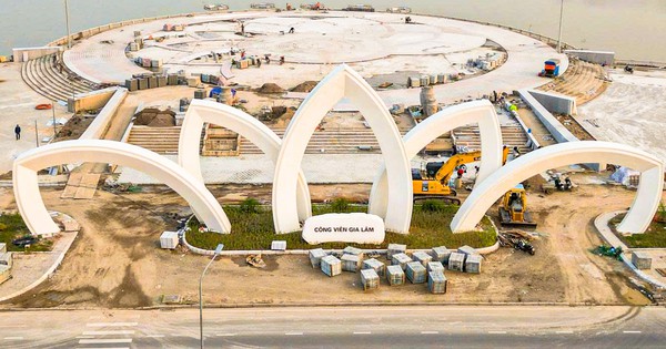 Sau 3 lần lỡ hẹn tiến độ, công viên Gia Lâm (Hà Nội) với vốn đầu tư hơn 280 tỷ đồng đang dần hoàn thiện, nổi bật với cổng hoa sen 5 cánh và nhiều hạng mục cảnh quan.