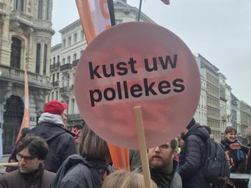 De Vlaamse socioculturele sector heeft woensdag vlakbij het Vlaams Parlement actie gevoerd. Onder de noemer 'Kust ze!' klagen ze de Vlaamse besparingen in het sociocultureel volwassenwerk aan.