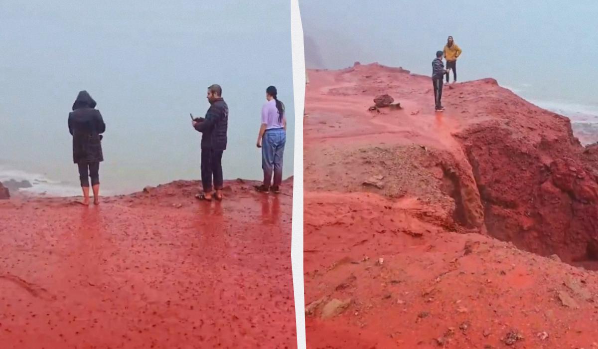 Довгоочікувані дощі в Ірані принесли незвичайний феномен: на острові Ормуз вода забарвилася в яскраво-червоний колір
