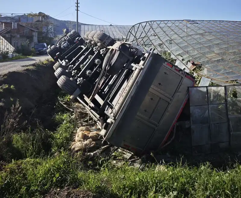gazipaşa’da devrilen kamyonun sürücüsü yaralandı