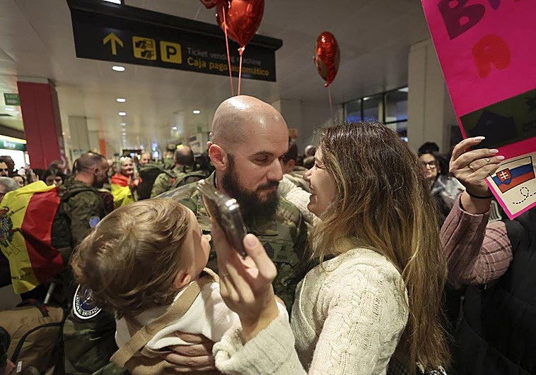 El Aeropuerto de Asturias fue testigo de la cálida bienvenida que recibieron los militares al regresar a su tierra. Allí les esperaban sus familias, que guardaban para ellos mucho cariño y abrazos