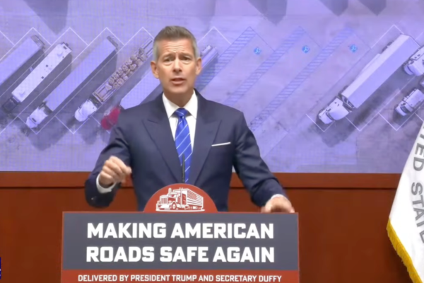 联邦交通部长达菲12日在记者会上,要求纽约州在30天内撤销违法的商用驾照。(新唐人电视台)